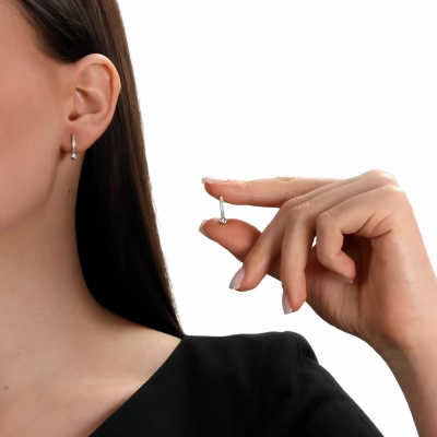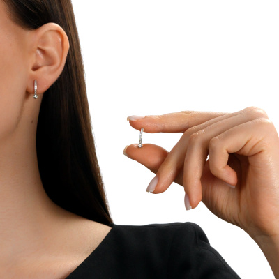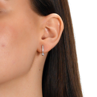 Серьги с 2 бриллиантами природными, 0.004 карат, огранка круг 17 граней, цвет 2, чистота 2, тип огранки А; 24 бриллиантами природными, 0.04 карат, огранка круг 17 граней, цвет 2, чистота 2, тип огранки А; Белое золото 585 пробы.