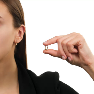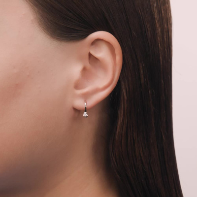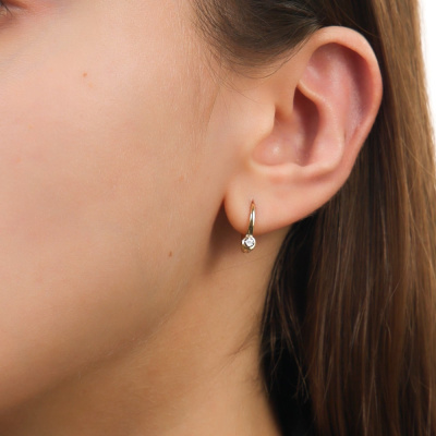 Серьги с 2 бриллиантами природными, 0.004 карат, огранка круг 17 граней, цвет 2, чистота 2, тип огранки А; Желтое и белое золото 585 пробы.