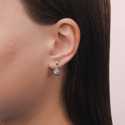 Серьги с 2 бриллиантами природными, 0.03 карат, огранка круг 57 граней, цвет 3, чистота 6, тип огранки А; 32 бриллиантами природными, 0.05 карат, огранка круг 17 граней, цвет 2, чистота 2, тип огранки А; Розовое и белое золото 585 пробы.