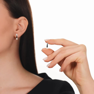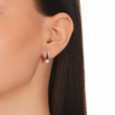 Серьги с 2 бриллиантами природными, 0.02 карат, огранка круг 57 граней, цвет 3, чистота 6, тип огранки А; 12 бриллиантами природными, 0.04 карат, огранка круг 17 граней, цвет 2, чистота 2, тип огранки А; Белое золото 585 пробы.