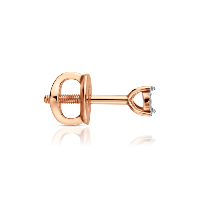 Серьги с 2 бриллиантами природными, 0.01 карат, огранка круг 57 граней, цвет 3, чистота 6, тип огранки А; Розовое и белое золото 585 пробы.