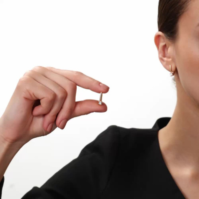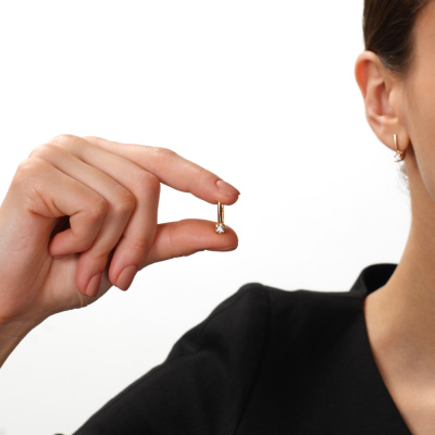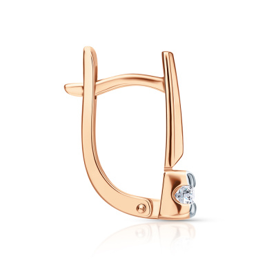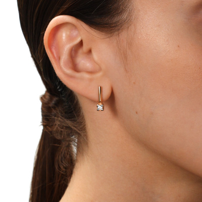 Серьги с 2 бриллиантами природными, 0.17 карат, огранка круг 57 граней, цвет 3, чистота 6, тип огранки А; Розовое золото 585 пробы.