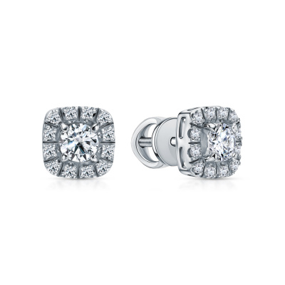 Серьги с 2 бриллиантами выращенными, 0.63 карат, огранка круг 57 граней, цвет 3, чистота 6, тип огранки А; 24 бриллиантами выращенными, 0.2 карат, огранка круг 57 граней, цвет 3, чистота 6, тип огранки А; Белое золото 585 пробы.