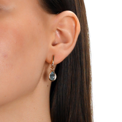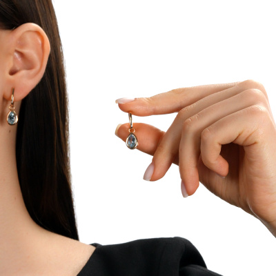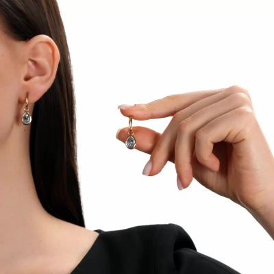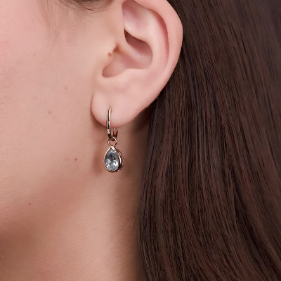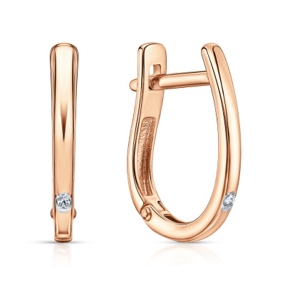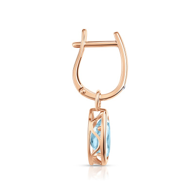Серьги с 2 бриллиантами природными, 0.008 карат, огранка круг 17 граней, цвет 2, чистота 2, тип огранки А; 2 топазами скай природными, 3.01 карат; Розовое золото 585 пробы.