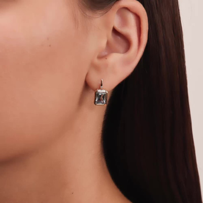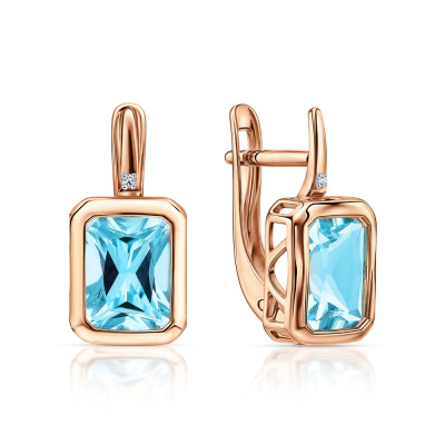 Серьги с 2 бриллиантами природными, 0.008 карат, огранка круг 17 граней, цвет 2, чистота 2, тип огранки А; 2 топазами скай природными, 3.74 карат; Розовое золото 585 пробы.