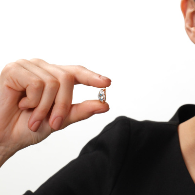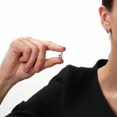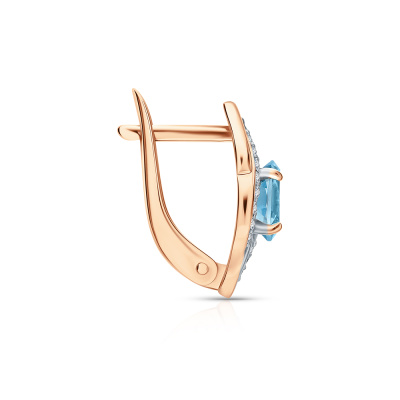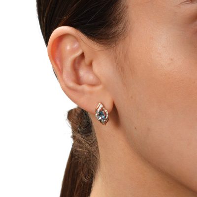 Серьги с 36 бриллиантами природными, 0.15 карат, огранка круг 17 граней, цвет 2, чистота 2, тип огранки А; 2 топазами свисс природными, 1.09 карат; Розовое золото 585 пробы.