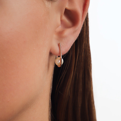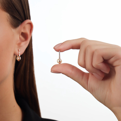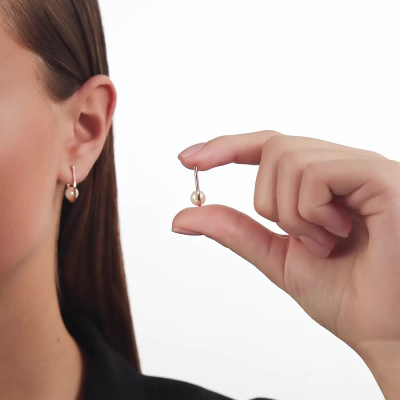 Серьги с 2 жемчугами пресноводными культ.белыми; Розовое золото 585 пробы.
