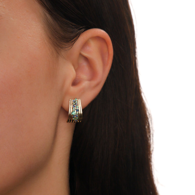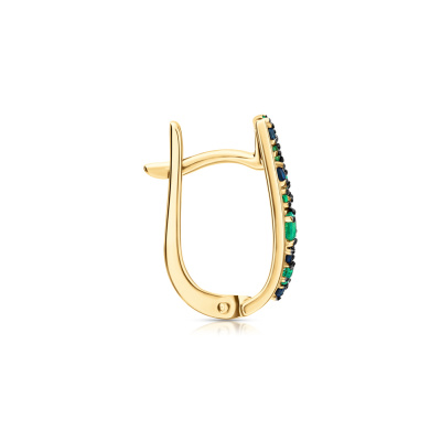 Серьги с 2 изумрудами природными, 0.12 карат, цвет 3, чистота 3, тип огранки В; 2 сапфирами природными, 0.07 карат, цвет 2, чистота 2, тип огранки В; 4 сапфирами природными, 0.07 карат, цвет 2, чистота 2, тип огранки В; 6 изумрудами природными, 0.07 карат, цвет 3, чистота 3, тип огранки В; 8 сапфирами природными, 0.09 карат, цвет 2, чистота 2, тип огранки В; 10 изумрудами природными, 0.08 карат, цвет 3, чистота 3, тип огранки В; Желтое золото 585 пробы.