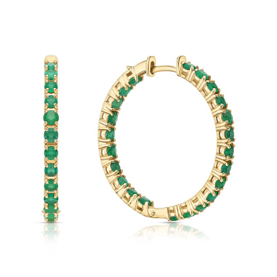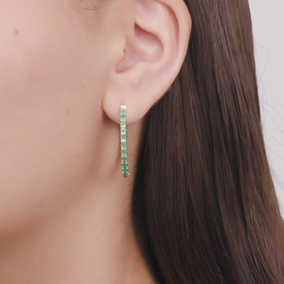 Серьги с 46 изумрудами природными, 2.8 карат, цвет 3, чистота 3, тип огранки В; Желтое золото 585 пробы.