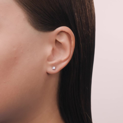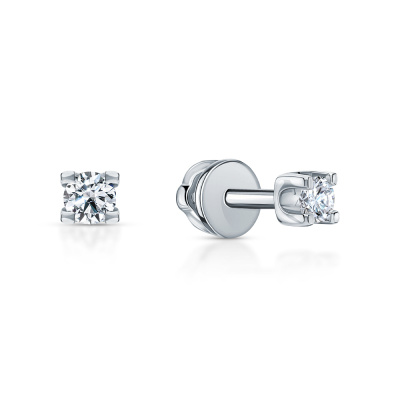 Серьги с 2 бриллиантами природными, 0.21 карат, огранка круг 57 граней, цвет 3, чистота 6; Белое золото 585 пробы.