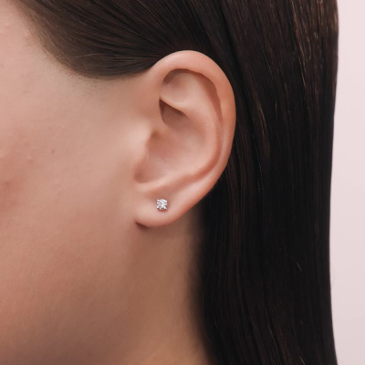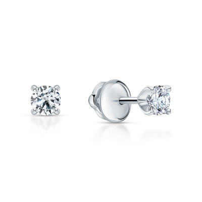 Серьги с 2 бриллиантами природными, 0.33 карат, огранка круг 57 граней, цвет 3, чистота 6; Белое золото 585 пробы.