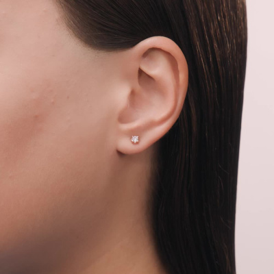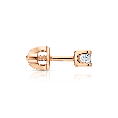 Серьги с 2 бриллиантами природными, 0.21 карат, огранка круг 57 граней, цвет 3, чистота 6; Розовое золото 585 пробы.