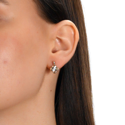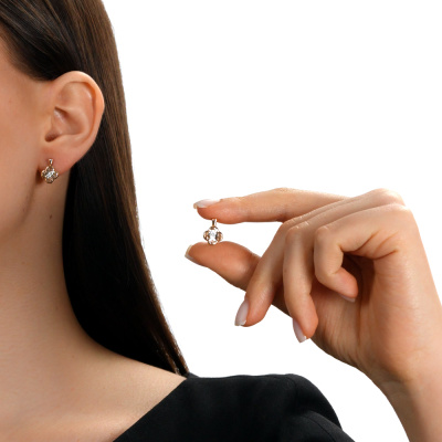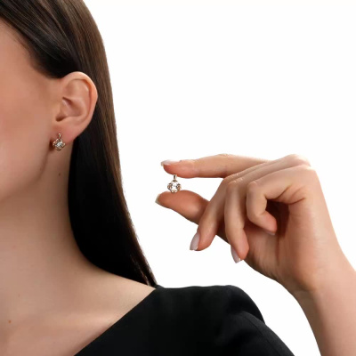 Серьги с 2 бриллиантами природными, 0.04 карат, огранка круг 57 граней, цвет 3, чистота 6, тип огранки А; Розовое и белое золото 585 пробы.