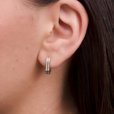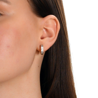 Серьги с 36 бриллиантами природными, 0.1 карат, огранка круг 17 граней, цвет 2, чистота 2, тип огранки А; Желтое золото 585 пробы.