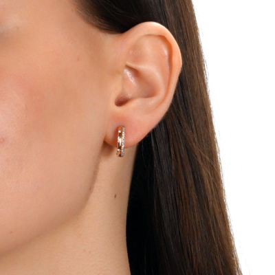 Серьги с 6 бриллиантами природными, 0.05 карат, огранка круг 17 граней, цвет 2, чистота 2, тип огранки А; 26 бриллиантами природными, 0.07 карат, огранка круг 17 граней, цвет 2, чистота 2, тип огранки А; Розовое золото 585 пробы.