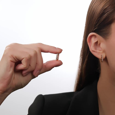 Серьги с 26 бриллиантами природными, 0.08 карат, огранка круг 17 граней, цвет 2, чистота 2, тип огранки А; Розовое золото 585 пробы.