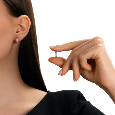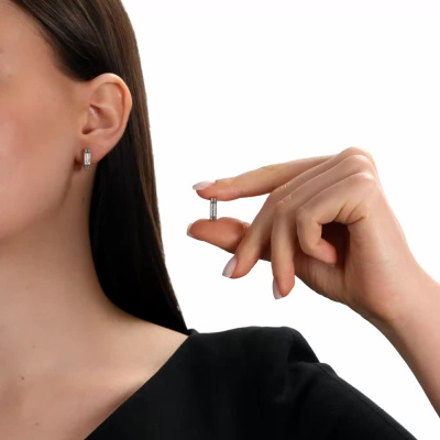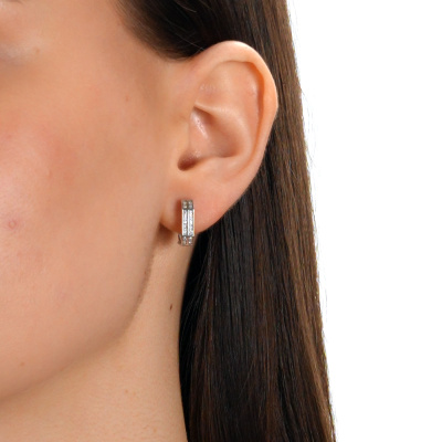 Серьги с 36 бриллиантами природными, 0.1 карат, огранка круг 17 граней, цвет 2, чистота 2, тип огранки А; Белое золото 585 пробы.