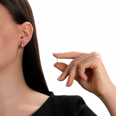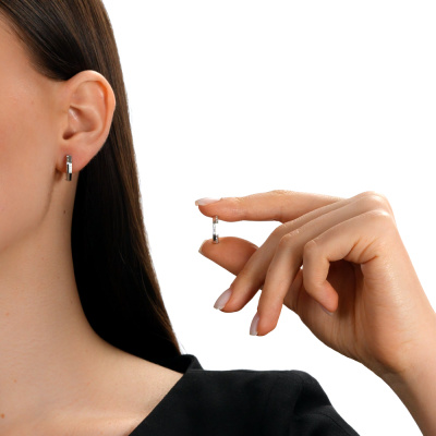 Серьги с 24 бриллиантами природными, 0.11 карат, огранка круг 17 граней, цвет 2, чистота 2, тип огранки А; Белое золото 585 пробы.