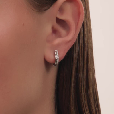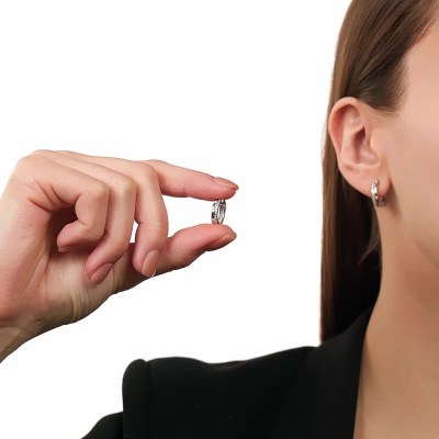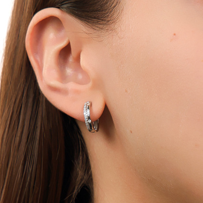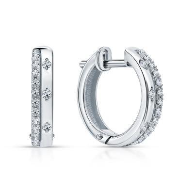 Серьги с 6 бриллиантами природными, 0.05 карат, огранка круг 17 граней, цвет 2, чистота 2, тип огранки А; 26 бриллиантами природными, 0.07 карат, огранка круг 17 граней, цвет 2, чистота 2, тип огранки А; Белое золото 585 пробы.