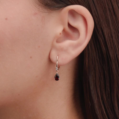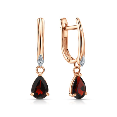 Серьги с 2 бриллиантами природными, 0.009 карат, огранка круг 17 граней, цвет 2, чистота 2, тип огранки А; 2 гранатами природными, 1.7 карат; Розовое золото 585 пробы.
