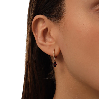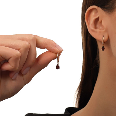 Серьги с 2 бриллиантами природными, 0.008 карат, огранка круг 17 граней, цвет 2, чистота 2, тип огранки А; 2 гранатами природными, 1.66 карат; Розовое золото 585 пробы.