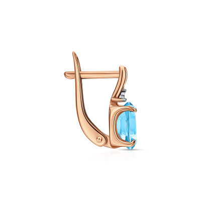 Серьги с 2 бриллиантами природными, 0.01 карат, огранка круг 17 граней, цвет 2, чистота 2, тип огранки А; 2 топазами скай природными, 3.05 карат; Розовое и белое золото 585 пробы.