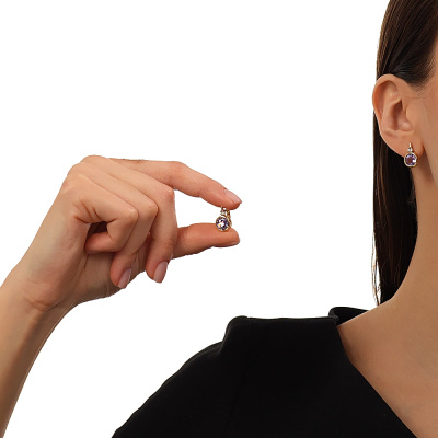 Золотые серьги с бриллиантами природными и аметистами природными