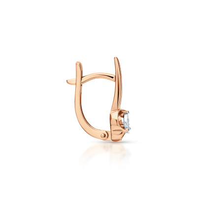 Серьги с 2 бриллиантами природными, 0.05 карат, огранка круг 57 граней, цвет 3, чистота 6, тип огранки А; Розовое и белое золото 585 пробы.