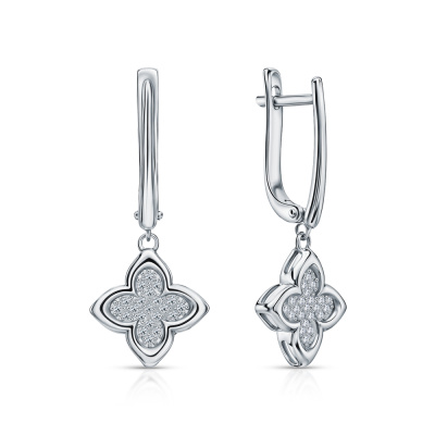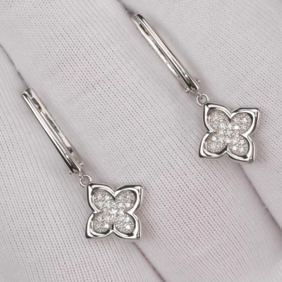 Серьги с 42 бриллиантами природными, 0.14 карат, огранка круг 57 граней, цвет 4, чистота 5, тип огранки А; Белое золото 585 пробы.