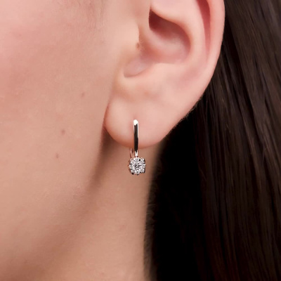 Серьги с 2 бриллиантами природными, 0.16 карат, огранка круг 57 граней, цвет 4, чистота 5, тип огранки А; 16 бриллиантами природными, 0.14 карат, огранка круг 57 граней, цвет 4, чистота 5, тип огранки А; Розовое и белое золото 585 пробы.
