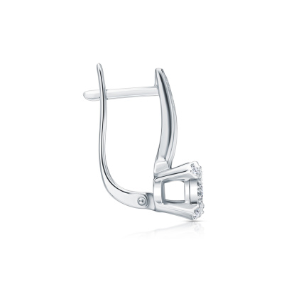 Серьги с 2 бриллиантами природными, 0.02 карат, огранка круг 57 граней, цвет 4, чистота 5, тип огранки А; 18 бриллиантами природными, 0.07 карат, огранка круг 17 граней, цвет 2, чистота 2, тип огранки А; 24 бриллиантами природными, 0.04 карат, огранка круг 17 граней, цвет 2, чистота 2, тип огранки А; Белое золото 585 пробы.