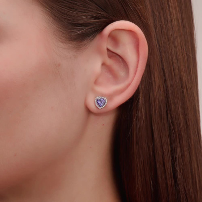 Серьги с 36 бриллиантами природными, 0.14 карат, огранка круг 17 граней, цвет 2, чистота 2, тип огранки А; 2 танзанитами природными, 1.63 карат; Белое золото 585 пробы.