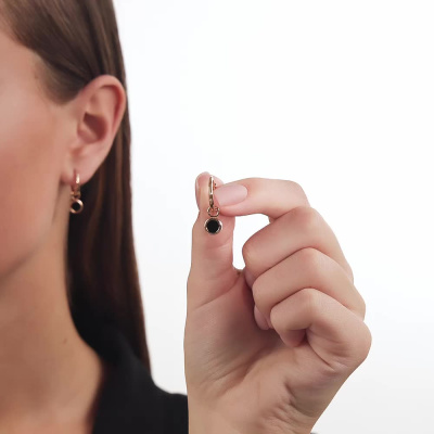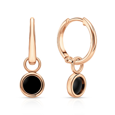Серьги с 2 ониксами черными природными; Розовое золото 585 пробы.