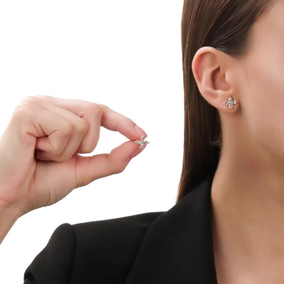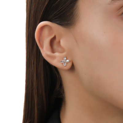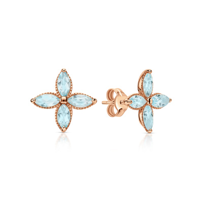 Серьги с 8 топазами скай природными, 1.29 карат; Розовое золото 585 пробы.