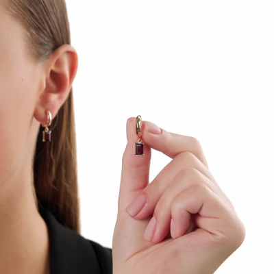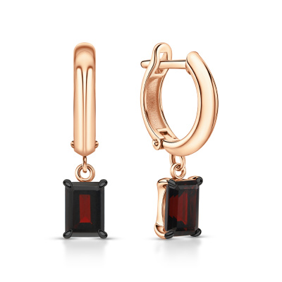 Серьги с 2 гранатами природными, 2.61 карат; Розовое золото 585 пробы.