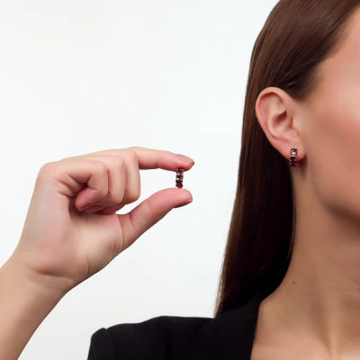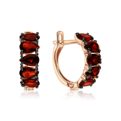 Серьги с 10 гранатами природными, 2.53 карат; Розовое золото 585 пробы.