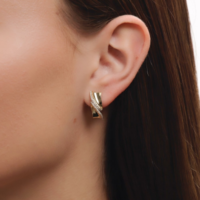 Серьги с 60 бриллиантами природными, 0.22 карат, огранка круг 57 граней, цвет 3, чистота 5, тип огранки А; Желтое золото 585 пробы.