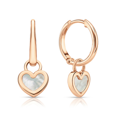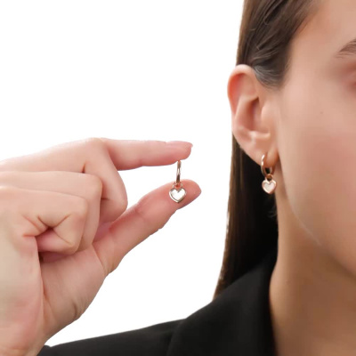 Серьги с 2 перламутрами белыми природными; Розовое золото 585 пробы.