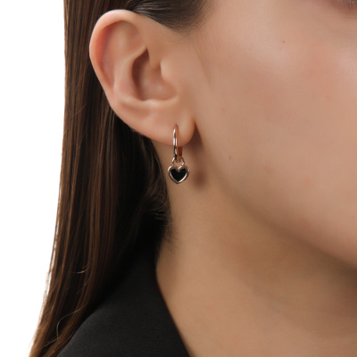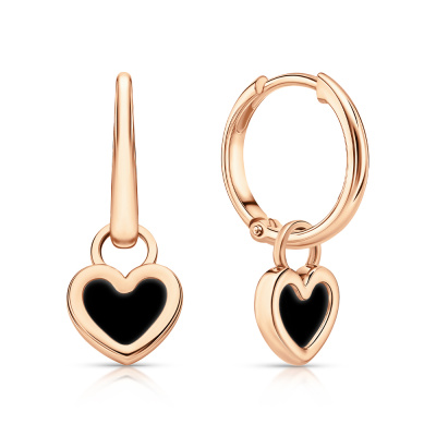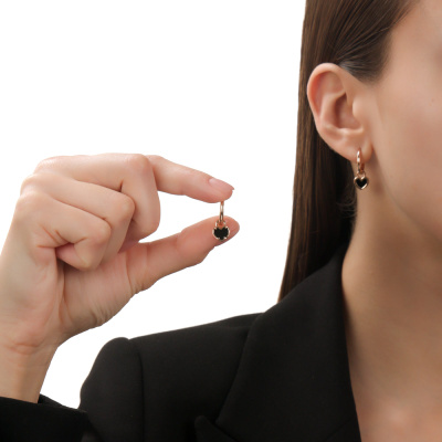 Серьги с 2 ониксами черными природными; Розовое золото 585 пробы.