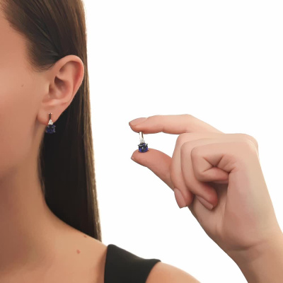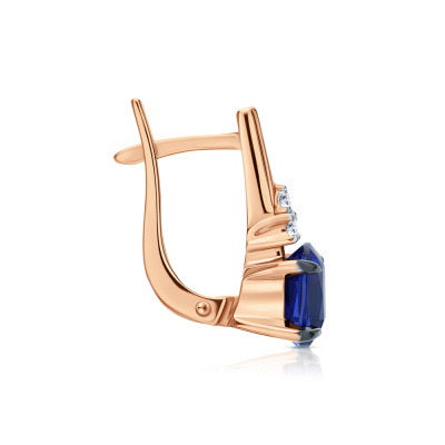 Серьги с 2 сапфирами выращенными, 4.04 карат; 6 бриллиантами выращенными, 0.13 карат, огранка круг 57 граней, цвет 3, чистота 6; Розовое золото 585 пробы.