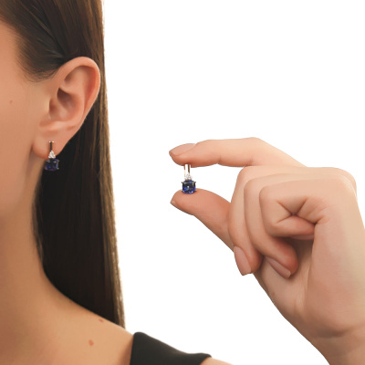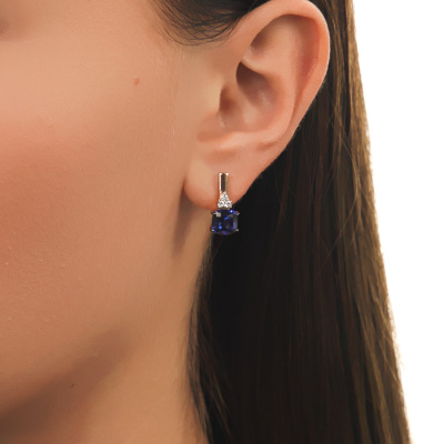Золотые серьги с бриллиантами выращенными и сапфирами выращенными
