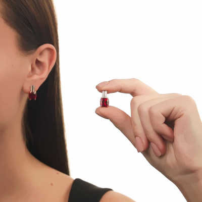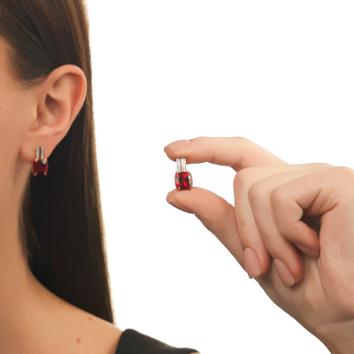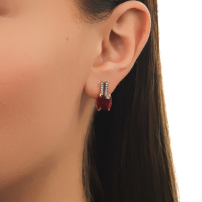 Золотые серьги с бриллиантами выращенными и рубинами выращенными