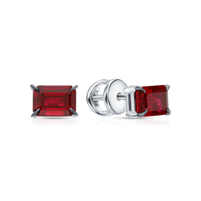 Серьги с 2 рубинами выращенными, 2.64 карат; Белое золото 585 пробы.