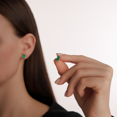 Серьги с 2 изумрудами выращенными Колумбия, 1.62 карат; Белое золото 585 пробы.
