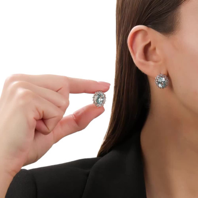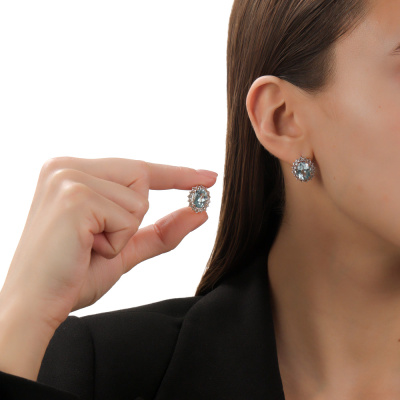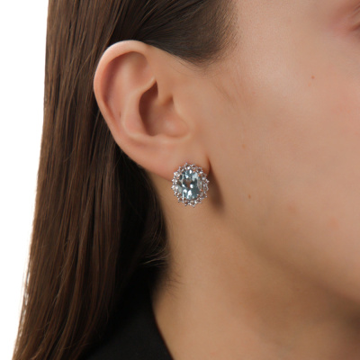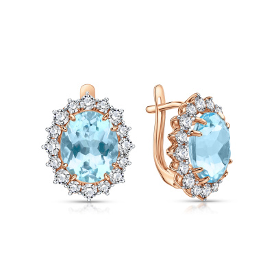 Серьги с 2 топазами скай природными, 8.55 карат; 16 горными хрусталями природными, 0.89 карат; 16 горными хрусталями природными, 0.5 карат; Розовое золото 585 пробы.