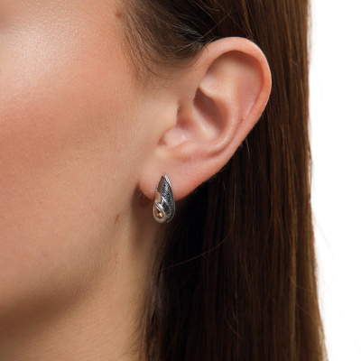 Серьги с 2 бриллиантами природными, 0.006 карат, огранка круг 17 граней, цвет 3, чистота 3, тип огранки Б; Серебро 925 пробы.