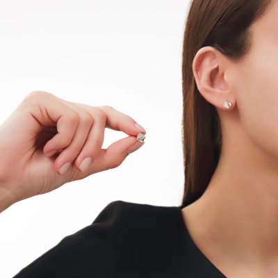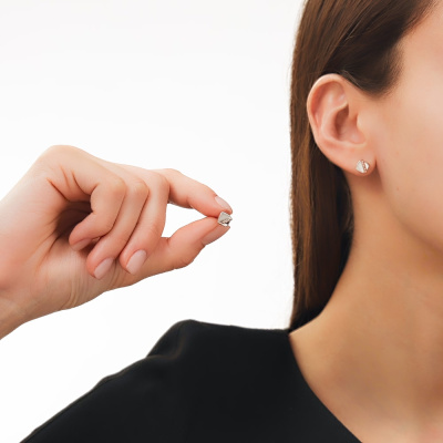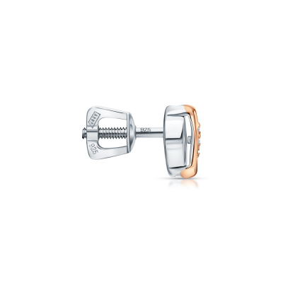 Серьги с 6 бриллиантами природными, 0.01 карат, огранка круг 17 граней, цвет 3, чистота 3, тип огранки Б; Серебро 925 пробы.