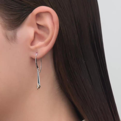 Серьги с 2 бриллиантами природными, 0.009 карат, огранка круг 17 граней, цвет 3, чистота 3, тип огранки Б; Серебро 925 пробы.