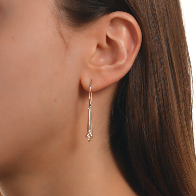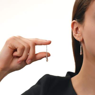 Серьги с 2 бриллиантами природными, 0.006 карат, огранка круг 17 граней, цвет 3, чистота 3, тип огранки Б; Серебро 925 пробы.