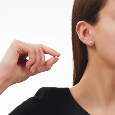 Серьги с 2 бриллиантами природными, 0.005 карат, огранка круг 17 граней, цвет 3, чистота 3, тип огранки Б; Серебро 925 пробы.